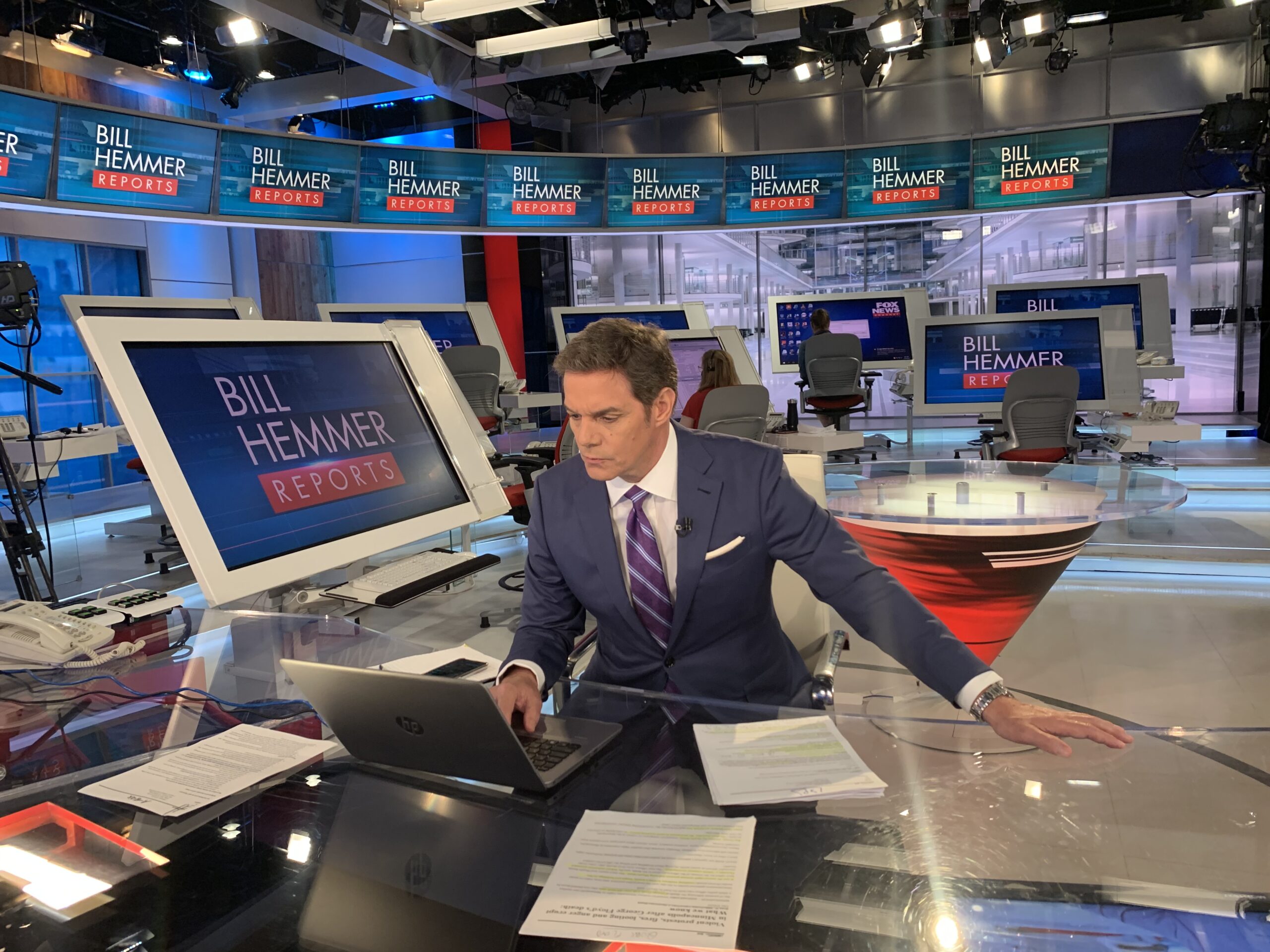 Instead of Bahamas screensavers, viewers of Bill Hemmer Reports in the 3 p.m. hour had grown accustomed to seeing a beehive of activity taking place behind the anchor. The state-of-the-art Fox News Deck from where the broadcast originates had — prior to the virus — been packed with staffers working at massively large terminals. Now, the audience sees Hemmer, and not too many others.