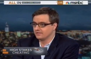 The format allows for a depth of conversation similar to that on Up, without quite as much looseness, and the occasional non-doctrinaire viewpoint that made Up appealing made appearances Monday night. The first two segments were about a pipeline rupture in Arkansas that has covered neighborhoods with Canadian tar-sands oil, which led to a discussion of the Keystone XL pipeline, which environmentalists vehemently oppose. Hayes gently lampooned the manipulative news trope of dramatizing oil disasters with oiled birds. Later in the show, panelist Dan Dicker pointed out that the Arkansas pipeline spill, from an 80 year-old pipeline, could actually be a selling point for Keystone, which would be brand new, and take pressure off of older pipelines. It was a point I had been waiting to hear, but not expecting to. During the show’s latter half, Hayes unexpectedly chided a panelist for making a “cop-out” comparison that most liberals would drool over.