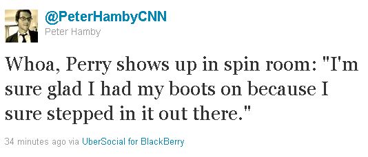 It was painful to watch. Maybe Perry ought to consult with Sarah Palin before the next debate, if he’s still in the race after this.