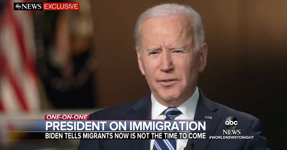 President Joe Biden was asked during his interview with ABC News’ George Stephanopoulos about the surge of migrants at the U.S.-Mexico border.