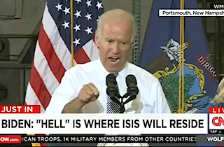 For those Americans looking for an angrier, more impassioned response to the deaths of American journalists James Foley and Steven Sotloff than President Barack Obama was able to provide, look no further than Vice President Joe Biden. Speaking at an event in Portsmouth, New Hampshire Wednesday, Biden drew cheers from the crowd by declaring that the U.S. will follow ISIS fighters to the “gates of hell.”