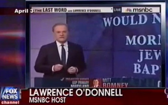On Tuesday night, MSNBC’s Lawrence O’Donnell continued his “politics of religion” series by defending President Obama from a Mitt Romney attack that he’s trying to establish “secularism” as a religion in the U.S. He did this with a blistering critique of Mormonism as an “invented religion.”
