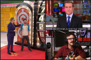 On one channel, Drew Carey hosts The Price is Right while lip-syncing about a diplomat carrying on his shoulder a Siamese cat; on another, comedian Marc Maron hosts his radio show; and on another, the cast of Pawn Stars negotiates a price while mouthing the lyrics. ESPN coverage of a tennis match also appears on one channel, as well as a kids’ cartoon show, a fake cooking show, an HGTV show, a History Channel doc, a cable news broadcast, a reality dating show, and rapper Danny Brown eating a variety of foods (including matzo) while lip-syncing.
