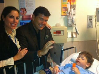 He Tweeted a picture of Paul happily playing with a teddy bear at the hospital before his procedure, as well as two of the little boy enjoying a cartoon movie and a popsicle with his parents.