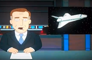 Last night’s first new Family Guy of 2013 saw the Griffin family accidentally launching themselves into space. This led to an animated Brian Williams reporting on the incident as his top story on the evening news.