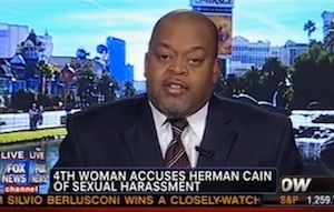Appearing this afternoon on Fox News, Herman Cain advisor and self-described “good friend” Niger Innis defended the beseiged Republican presidential candidate, saying he had been the victim of racist stereotyping in the midst of his sexual harassment scandal. “I’m very disturbed by what I see as nothing more than an attempted character assassination using one of the more vicious charges and stereotypes — which I call the mandingo stereotypes, that being the overly sexed black-skinned, black man that has been used for a couple of centuries in our country.”