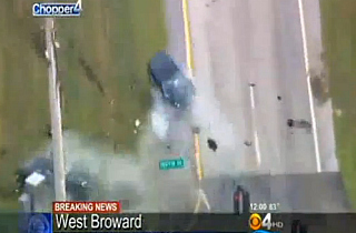 While the footage of those final, horrific moments of the chase resulted in a life lost, the CBS affiliate repeatedly aired the footage throughout their noon broadcast (with the requisite warning to viewers). While it’s a fact that the broadsided driver was killed, the footage is not gory or zoomed-in enough to show any gruesome details, thus perhaps coloring CBS Miami’s decision to run with the footage over and over again.