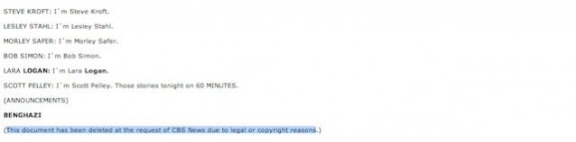 CBS News Requested LexisNexis Delete Transcript of Debunked Benghazi Report