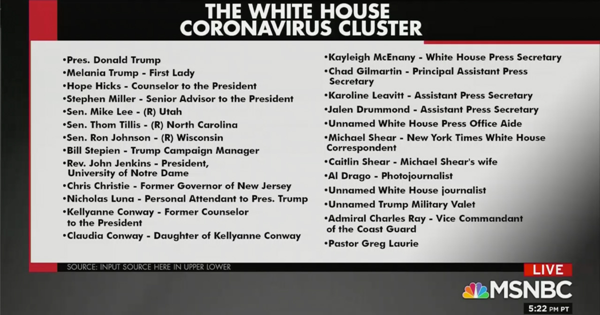 Chris Hayes Lists the Growing ‘White House Coronavirus Cluster’: A ‘Recklessness So Egregious… as to Only Be Described as Evil’