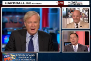 Last night Chris Matthews invited Joe Solomonese of the Human Rights Campaign and R. Clarke Cooper of the Log Cabin Republicans to discuss what Matthews is describing as a movement by the Conservative Elite to make the “Republican Case for Gay Marriage.”