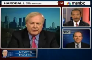 Matthews’ hearty, and at times awkward laughter throughout the segment was apparently contagious and Mfume couldn’t resist joining in on the fun. Mfume ultimately dismissed Newt as a fringe candidate with rhetoric that not only takes him far away from the political center, but that takes him right off the planet.