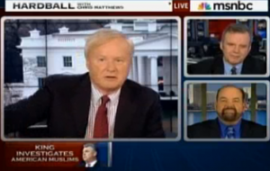 Matthews welcomed two guests who disagreed with King’s approach: Irish lobbyist Niall O’Dowd, who earlier suggested King was on “a strange journey from Irish radical to Muslim inquisitor,” and Jack O’Reilly, Mayor of Dearborn, Michigan, a city with a large Muslim population. O’Dowd argued all Muslims do not deserve to be demonized when only a small amount of extremists are the problem. He predicted that King was just screaming about Muslims in order to generate “easy headlines” and raise his own stature in Congress. O’Reilly worried that the outcome of these hearings has already been determined before any fact-finding began, and said King was “misinformed.”