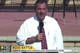New Jersey Gov. Chris Christie (R) got into one of his heated back-and-forths at a Tuesday town hall in New Jersey. The topic of contention: whether singer Bruce Springsteen asked Christie to stop using his music during public appearances.