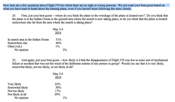 The pollsters also helpfully informed respondents that “there are no right or wrong answers” on the cause of the disappearance: