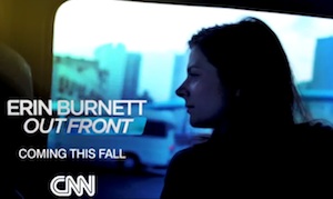 Details have finally emerged about Erin Burnett‘s new CNN show, revealed just now via the former CNBC hosts twitter feed. Burnett tweeted out a link to a 10 second promotional video that announces the title of her new show, OutFront, also revealing a gritty-but-cool-yet-still-accessible graphics package and soundtrack that befits the new CNN program for 7PM. No specific debut date was announced, though her tweet did say “in September.”