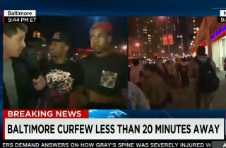 Shortly before Baltimore’s 10 p.m. curfew Wednesday evening, CNN’s Chris Cuomo was out among the protesters linking arms in the streets as riot police gathered nearby readying for the deadline. In a somewhat unusual moment, Cuomo warned some of the protesters to head home and “be careful” because of the strong potential for police clashes.