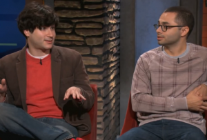 Both Mande and Garfinkel described it as a terrifying experience, and revealed that the studio has a giant mirror to convey the appearance of a larger audience. Mande said they planned beforehand to wear suits because they were worried they’d be recognized as Not Republicans if they wore anything casual, but it turned out they really over-dressed.