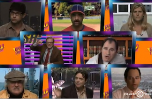 The talk show sketch covers every pundit stereotype on the map, beginning with the Chris Matthews-esque host who introduces the day’s topic: “The proliferation of talking heads on the news.” As he says, before bringing on his via-satellite guests, “let’s take it to the people in the tiny boxes!”