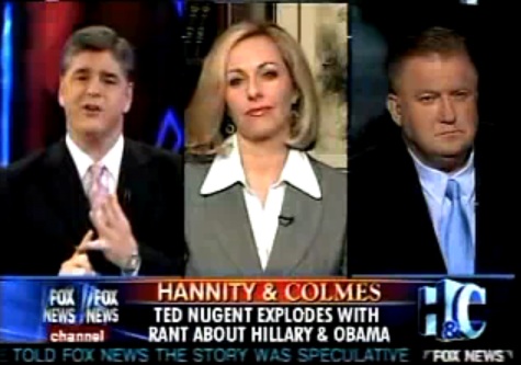 Of course, any regular viewer of Fox News knows that Nugent continues to be a fixture on the network, including Hannity’s show.