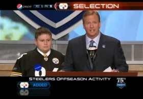 During last night’s NFL draft, when commissioner Roger Goodell stepped to the podium to announce the Pittsburgh Steelers’ pick, he was serenaded with chants of “She said no!”