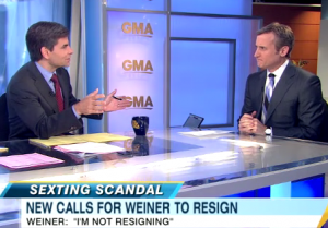 On Good Morning America, Mediaite founder and ABC legal analyst Dan Abrams discussed with George Stephanopoulos the legal implications of a House ethics investigation for Congressman Anthony Weiner. Abrams warned that Weiner’s most immediate headaches are likely to come from his own Democratic colleagues and from the media who won’t tire of this story anytime soon.