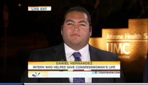 Daniel Hernandez, the intern (of only five days) who helped save Congresswoman Gabrielle Giffords‘ life after she and several others were shot in front of an Arizona Safeway during a meet-and-greet, appeared on The Today Show to talk to Matt Lauer about the rescue.