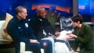 On Tuesday, Max and his owner were walking along the Smith Reservoir in Lakewood, Colorado. The dog chased after a coyote and slipped on some ice, falling into the freezing water. He could have died were it not for the actions of fireman Tyler Sugaski who put on a wetsuit and swam out to save him. The entire incident was caught on tape and quickly went viral, leading to the interview on KUSA. Everything was going well until the end when Dyer leaned in to give the dog a kiss. Something spooked him and, in an instant, he whirled up and bit her on the face. The show quickly cut away but, according to updates on the network’s Facebook page, Dyer was taken to the hospital and Max was put into quarantine with animal control