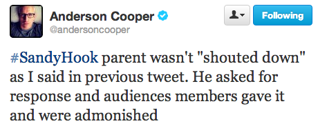Cooper’s CNN colleague, Piers Morgan, was also willing to concede the point and issue a correction. After the full video made its rounds, he tweeted, “AN APOLOGY: No, those gun supporters didn’t ‘heckle’ Neil Heslin – they just shamed themselves with their disgusting behaviour. My mistake.” Though he did go on to call the gun advocates “repulsive” for answering Helsin’s question with “2nd Amendment rights.”