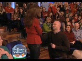 Ok, kids, we’re going to need your help with this one. In this segment from Ellen DeGeneres‘ talk show, a nice young man surprises his girlfriend by proposing to her on the program.