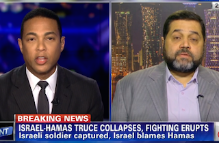 CNN anchor Don Lemon put Hamas spokesman Osama Hamdan on the hot seat tonight over Hamas’ reported capture of an Israeli soldier that factored into the swift end of the ceasefire. And what Lemon really wanted to ask was, “How much longer will you allow innocent Palestinians to die and suffer?”