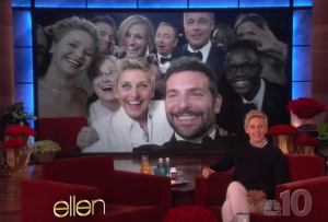 Ellen DeGeneres kicked off her live post-Oscars show Monday talking about the big awards ceremony and, of course, the selfie that crashed Twitter. The selfie, which included celebrities like Meryl Streep, Julia Roberts, and Kevin Spacey, quickly became the most retweeted thing ever in the history of things. And so today, aided by actor Max Greenfield, DeGeneres gave the audience some behind-the-scenes gossip from the big night.