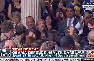 Environmental Protesters Heckle Obama During Healthcare Rally Speech