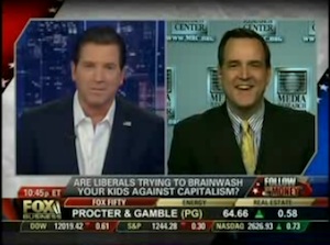 On Friday’s Follow The Money on Fox Business Network, Eric Bolling and his guest Media Research Center‘s Dan Gainor strongly criticized the environmental themes of the recently released Muppets film. “Let’s point this out,” Bolling exclaimed. “This evil muppet is titled Tex Richman!” “It’s amazing how far the left will go just to manipulate your kids, to convince them, give the anti-corporate message,” lambasted Gainor. ‘I mean this is a Muppet movie for goodness sakes! The only thing green on the screen should be Kermit!’