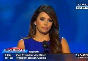 Actress Eva Longoria spoke earlier at the Democratic National Convention and touted her support for President Obama‘s reelection. The Desperate Housewives star praised Obama’s accomplishments in office while criticizing Mitt Romney for wanting “to take us back to yesterday” and to give tax cuts to the wealthiest Americans.