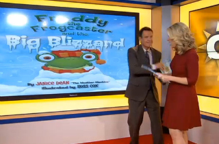 Dean, a.k.a., “The Weather Machine,” was in-studio to promote her new kids’ book Froddy the Frogcaster and the Big Blizzard, and announce that she is already working on yet another sequel in the series. Jerrick, a long-time Fox colleague of Dean’s, was so damn proud of her accomplishments that he took the hard copy of her book and planted a big ol’ tap on the butt.