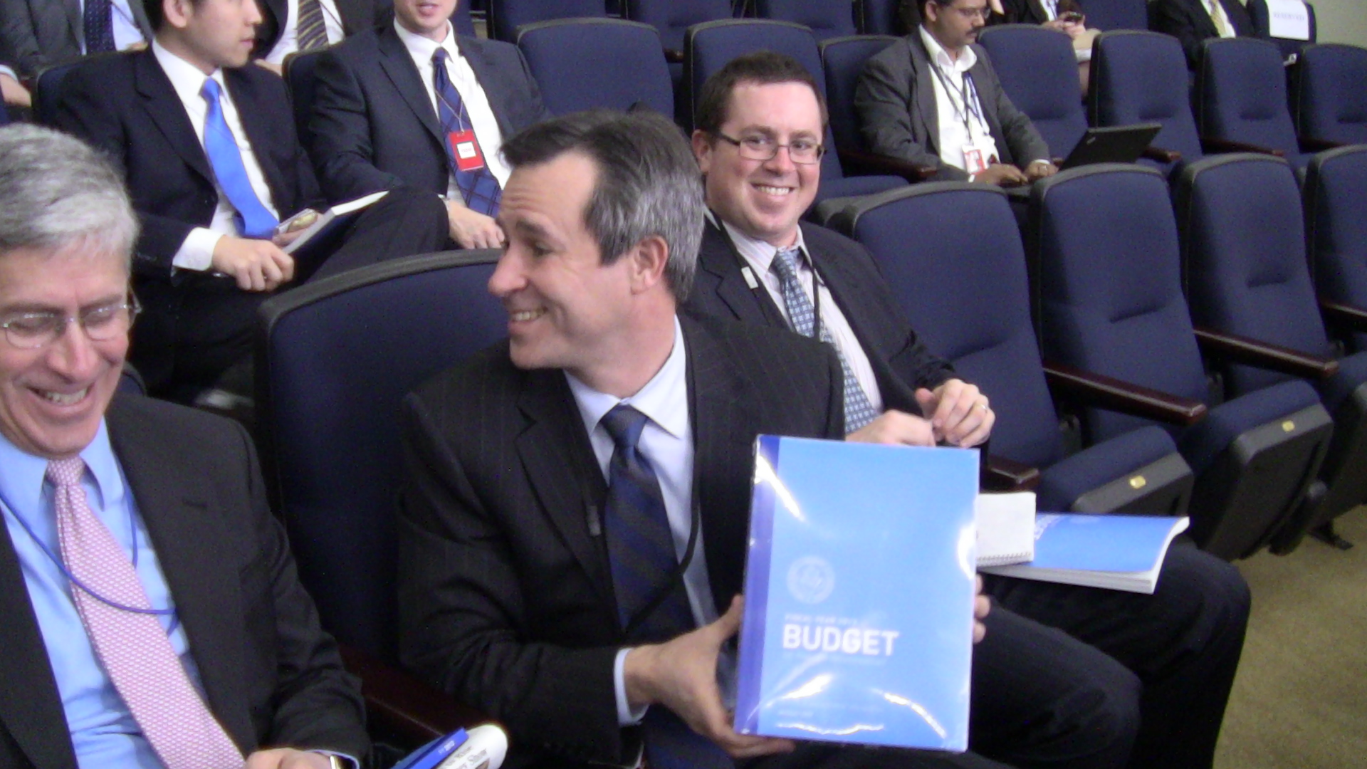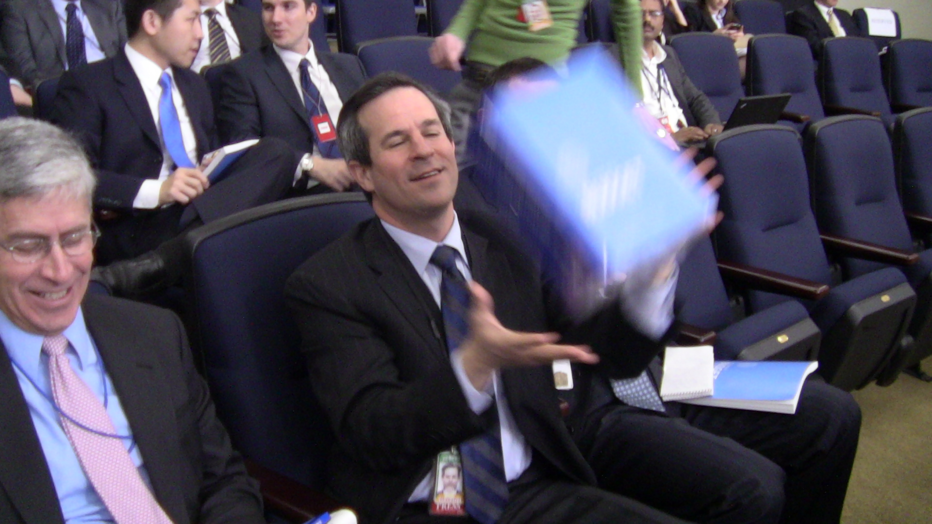 Good point, except that the President did write a budget. The thing weighed about ten pounds, and I got so tired of lugging the thing around, I gave it to WSJ‘s Jonathan Weisman. As you can see, he was delighted with the gift.