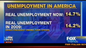 “So the real unemployment rate now 14.7 percent; the percentage when the President took office in 2009 should have read 14.2 percent, not 7.8 president,” added Gretchen Carlson.