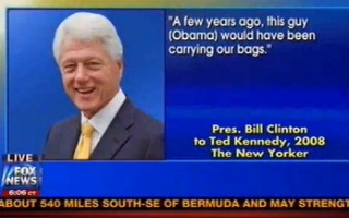The hosts made note of a New Yorker article by Ryan Lizza that mentions that, when Clinton was attempting to convince Ted Kennedy to support his wife’s bid for the Democratic nomination in 2008, he’d remarked that “a few years ago, this guy [Obama] would have been carrying our bags.”