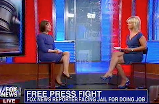 Fox News reporter Jana Winter is facing a First Amendment fight, being pressed to reveal the sources behind her story about Aurora theater shooter James Holmes — or face possible jail time. Judith Miller, who, you may recall, made headlines when she found herself in a similar situation, joined Fox & Friends co-host Gretchen Carlson on Monday. And her prediction wasn’t optimistic.