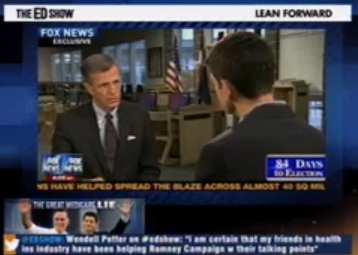 That’s a tougher trick to pull on Fox News’ Brit Hume, who drew praise from MSNBC political analyst Howard Fineman on Tuesday night’s The Ed Show for his dogged questioning of Romney running mate Paul Ryan on the issue of the Medicare savings. Host Ed Schultz introduced the clip, in which Hume asks Ryan “Doesn’t your budget contemplate major savings on Medicare on something of the same amount (as the President’s)?”