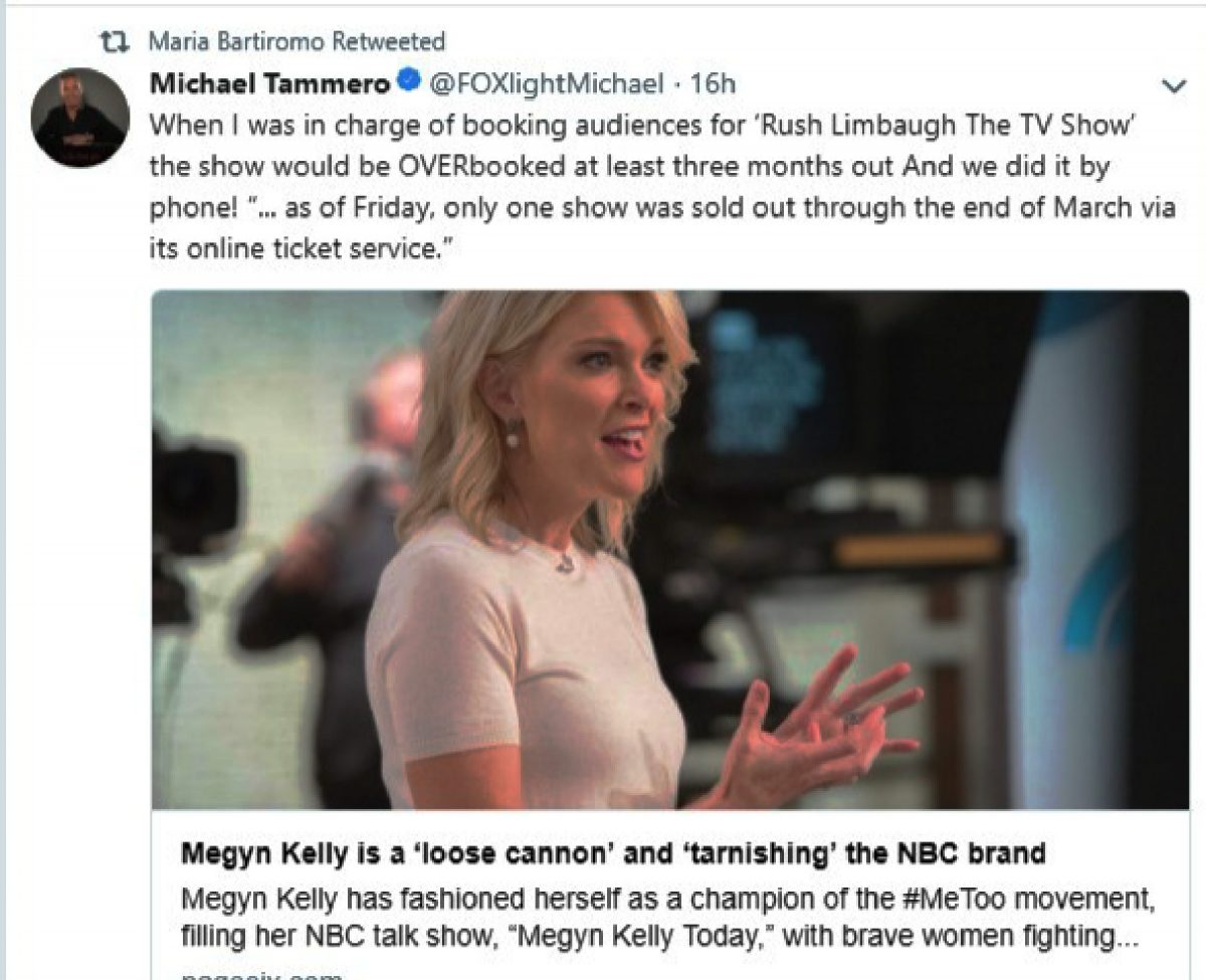 After Page Six published a scathing report on NBC’s Megyn Kelly detailing the purported “toxic atmosphere” on her show, Fox News and FBN senior vice president of marketing Michael Tammero took a swipe at the former Fox News host by sending out the following tweet: