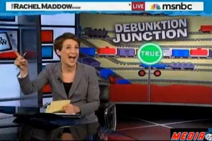 Given that MSNBC promos present Maddow as a tireless journalist in constant search of facts, it’s odd that she apparently did not confirm the Roll Call report with Fox News. The fact that she used this report to gloat over her earlier prediction and now appears to have been wrong in a segment titled “Debunktion Junction” is, well, pretty embarrassing. One wonders if Maddow will debunk her own debunking in a future show?