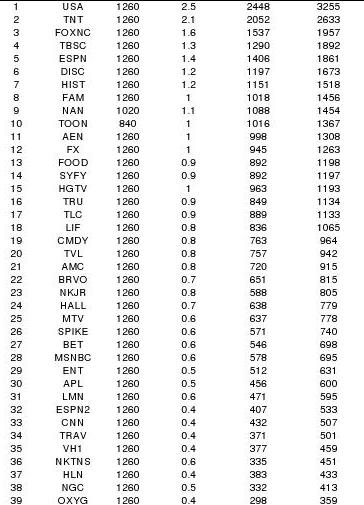 Here’s the full ranker for prime time – on the next page you’ll see the total day ranker and notes: