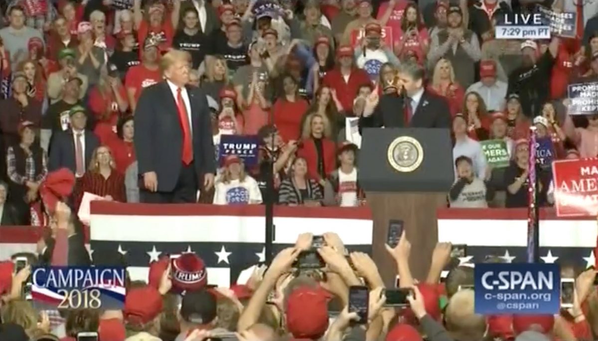 After the conclusion of his show and during Trump’s rally, however, the president called Hannity up on stage.