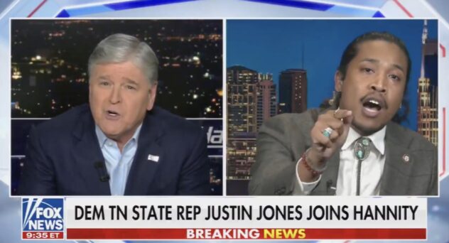 TN state Rep. Justin Jones accused Sean Hannity of hanging out with “pedophiles and perverts” at Mar-a-Lago during a shocking battle on Fox News Tuesday night.