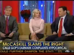 McCaskill, who spoke witheringly about Republican criticisms of earmarks in the legislation, had part of her remarks played on F&F Friday morning, and the short clip was more than enough to apparently give Kilmeade the fingernails-on-the-chalkboard willies: