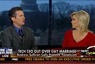Sunday’s edition of Howard Kurtz’s MediaBuzz on Fox News opened with a heated discussion about the ouster of Mozilla CEO Brendan Eich over political contributions he made in 2008 to the anti-gay marriage Proposition 8 in California. Gay rights activist and blogger John Aravosis defended the activism that ultimately led to Eich’s resignation, and raised the hypothetical scenario of a major CEO who happened to be a Holocaust-denier.