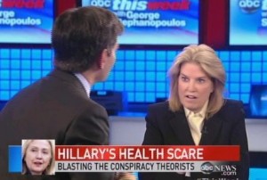 On ABC’s This Week Sunday, host George Stephanopoulos questioned Fox News’ Greta Van Susteren for the tendency of her network to mock Secretary of State Hillary Clinton‘s recent illness.