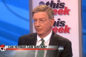 In a stinging comparison that is sure to leave a mark, on Sunday’s This Week With Christiane Amanpour, George Will said the rise of Herman Cain had a lot to do with Republicans coming to the realization that Mitt Romney is their Michael Dukakis. “A technocratic Massachusetts governor running on competence, not ideology,” Will observed.