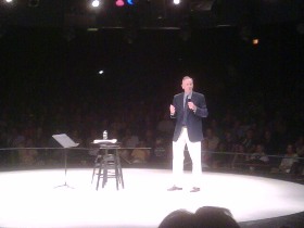 Bill O’Reilly took the next half hour, and his approach was lighter than Beck’s. He joked about Sean Penn and Haiti (mimicking a Haitian resident: “I’d rather live in the tent, just go home Sean!”) and “community activist” Lupe Fiasco (he’s a rapper, actually, but the crowd didn’t seem to realize the mischaracterization). O’Reilly treated it like he was chatting with some friends at the dinner table – very conversational. I guess that’s why “waterboarding” became “dunking” as he discussed torture. The crowd loved O’Reilly, but not to the degree of Beck (although the couple next to me refused to say who they liked more – only that they loved both).
